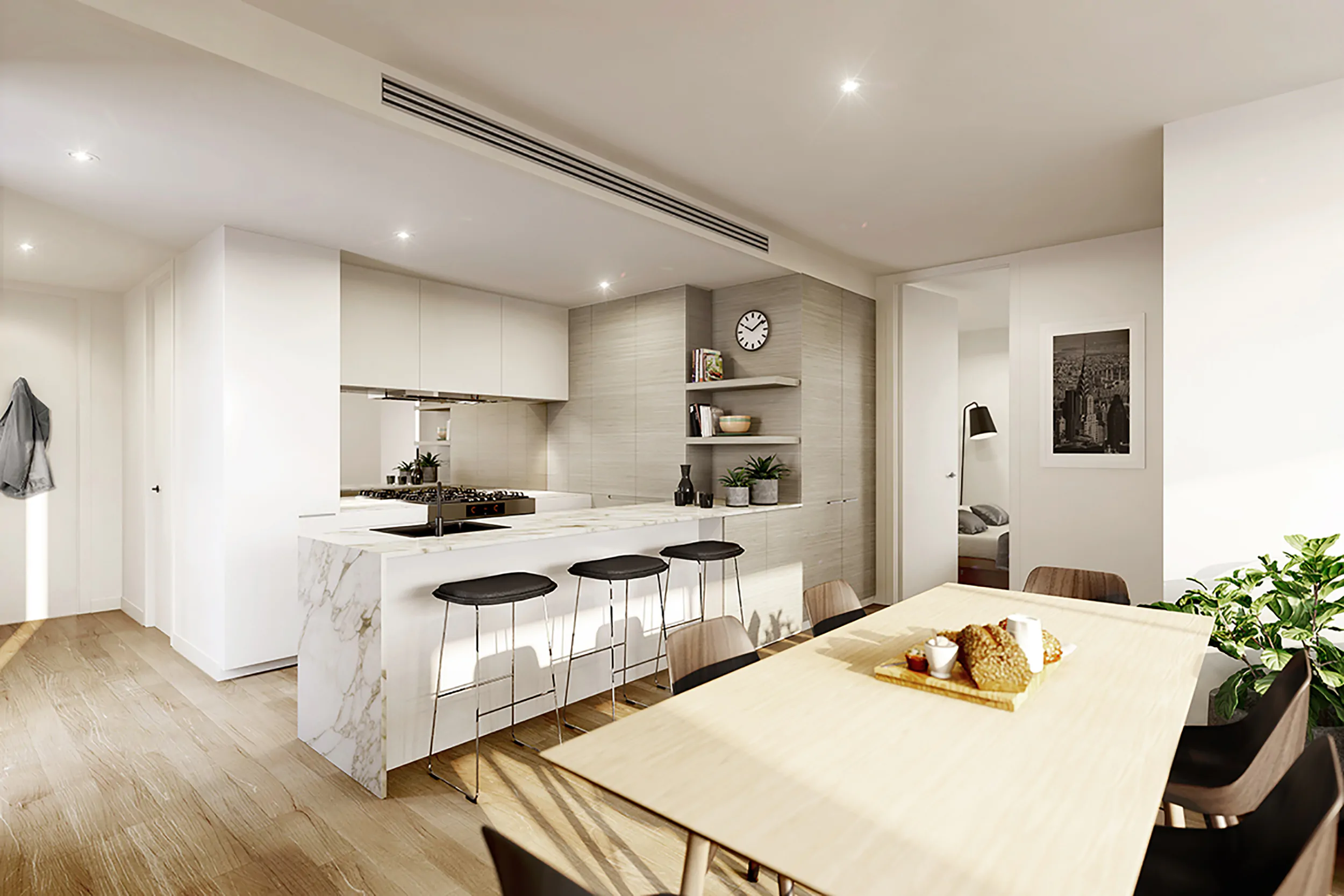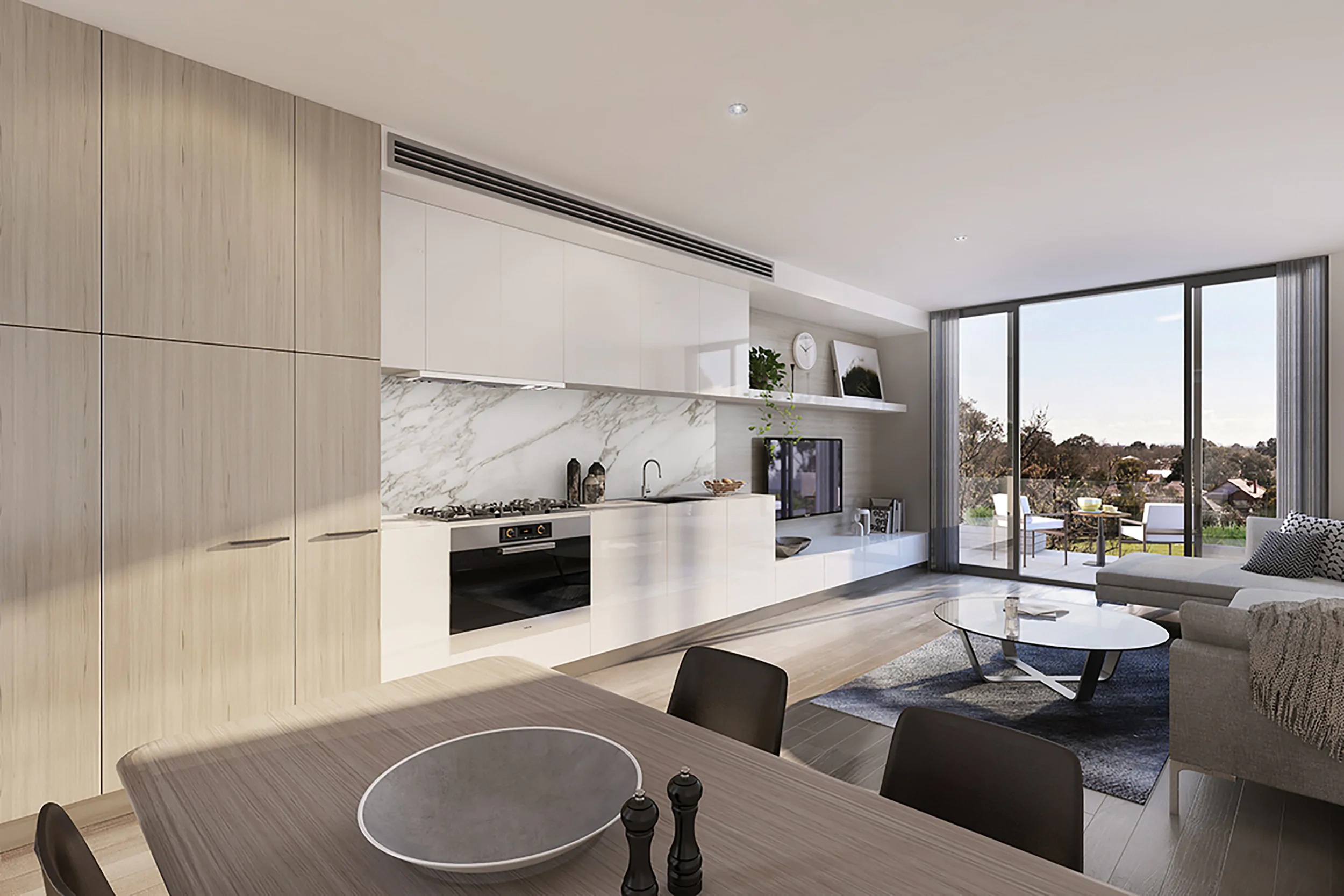Belle Balwyn is a 5 level boutique apartment building located in the expanding shopping precinct opposite the Balwyn Cinemas. It contains 16 contemporary two and three bedroom apartments, basement parking and a ground floor food premises. A custom designed penthouse suite occupies the top floor that makes full use of the large terraces & commanding views. The façade is characterised by expressed slab edges with a random arrangement of masonry infill panels, window openings & balconies to create a distinctive rhythm.
