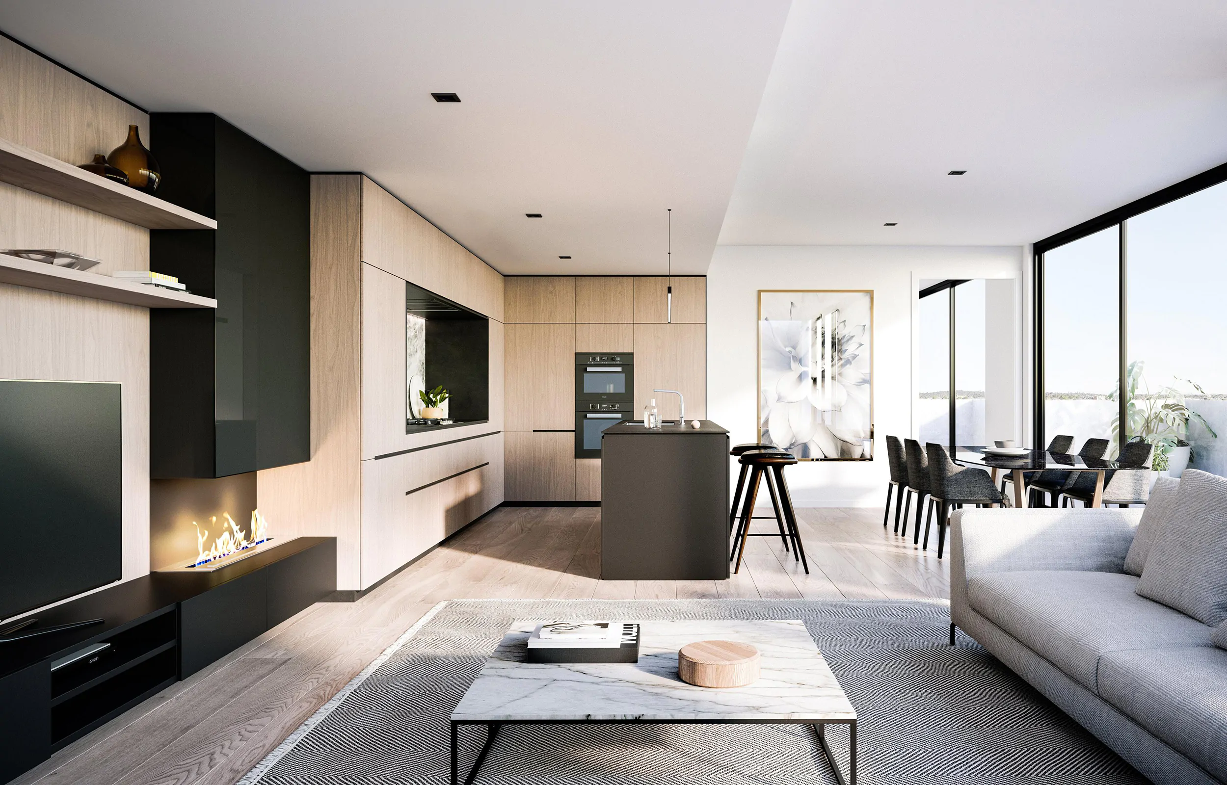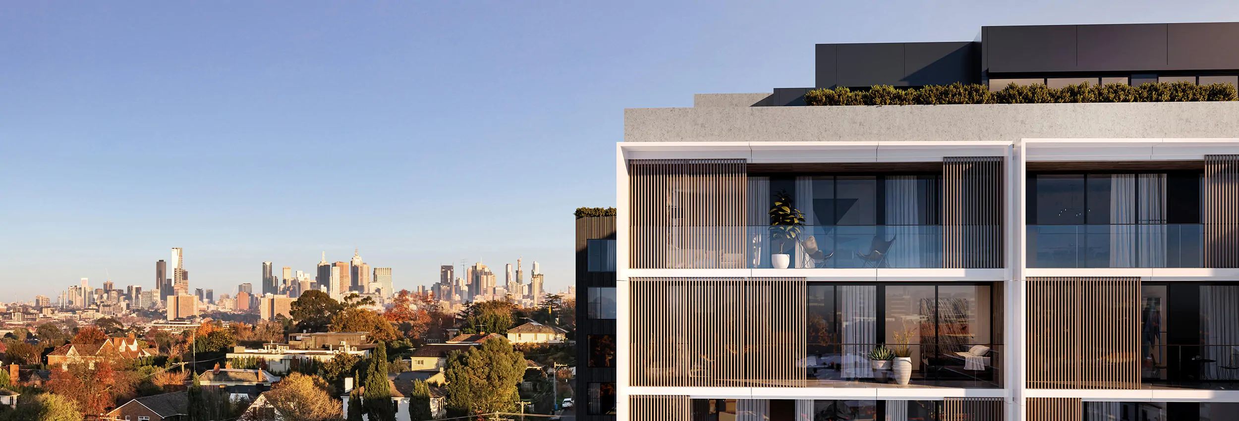 Located at Kew Junction, Denmårk consists of 59 premium apartments specifically tailored for the local market. Our inspiration descends from Nordic design, traditionally characterized by simplicity, minimalism and functionality. We have crafted this building to highlight the iconic Scandinavian materials of blond timbers, natural stone and contrasting black steel elements to create a premium residential feel that is strong & inviting.