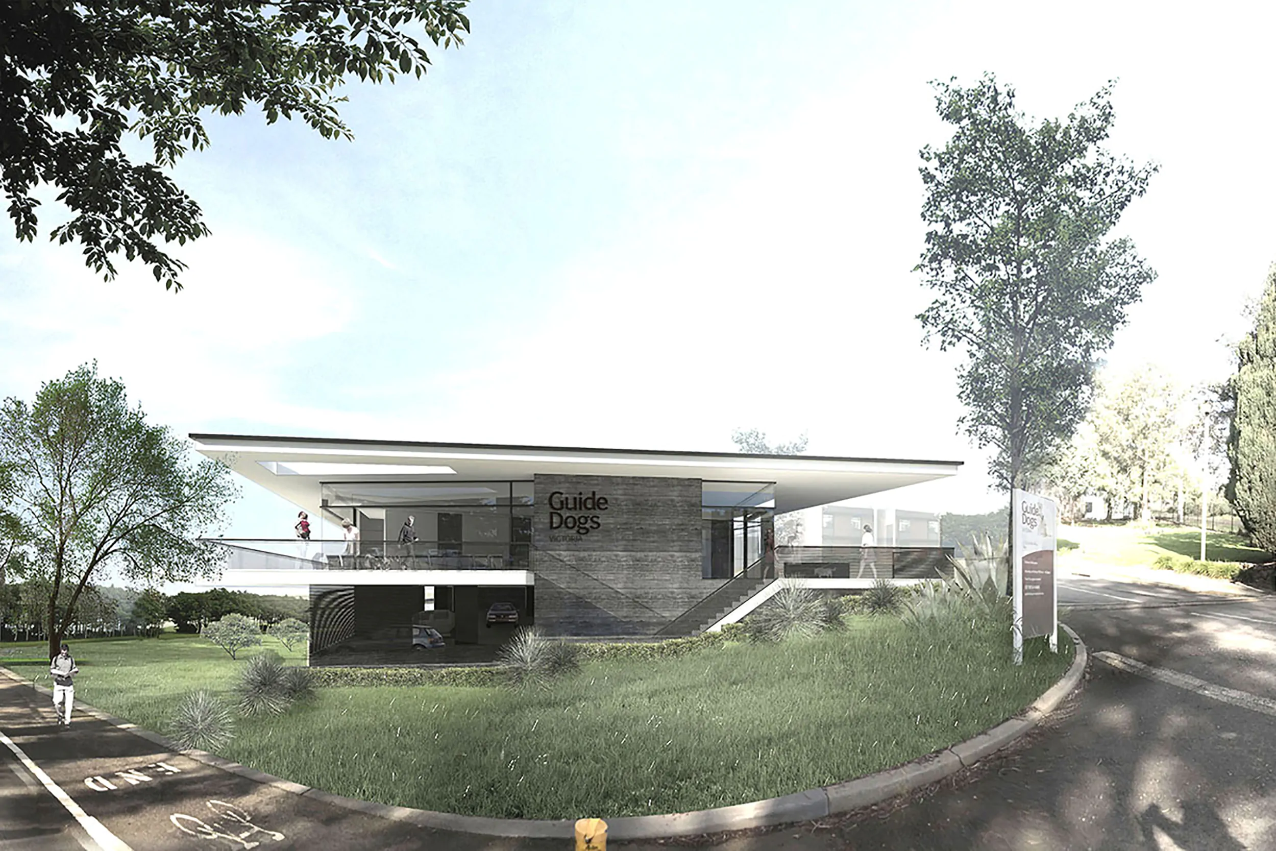 Forming part of the Guide Dogs Victoria masterplan the new Veterinary Hospital will be the gateway building on the Kew campus offering specialised services to the public and GDV. The clean simple lines of this building, combined with timber, water feature and extensive planting create a space where both animals and owners can relax.
